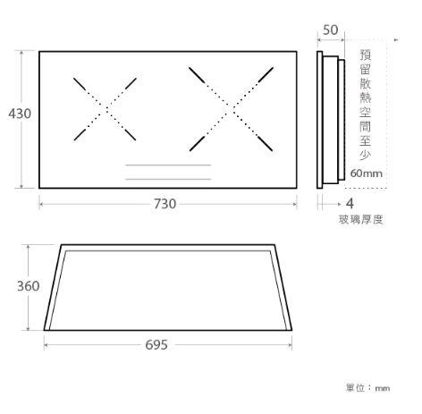 D360 mm(爐具安裝高度尺寸已包含散熱空間60mm)