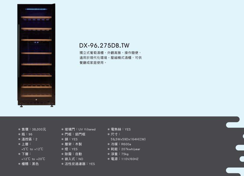 : DX-96.275DB.TW : Dunavox 雙溫紅酒櫃獨立櫥櫃96瓶Special Price $38,000