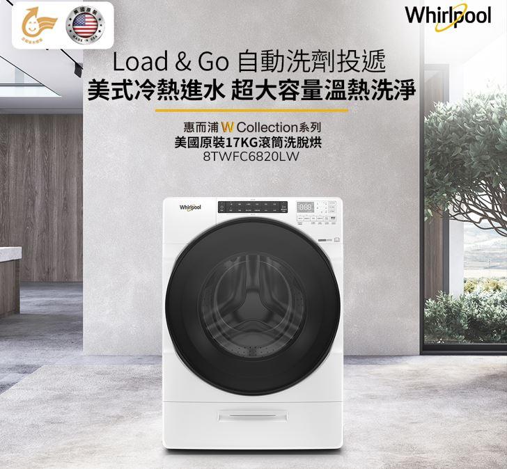 : 8TWFC6820LW : Whirlpool滾筒洗脫烘Special Price $43,500 / 10KG烘衣